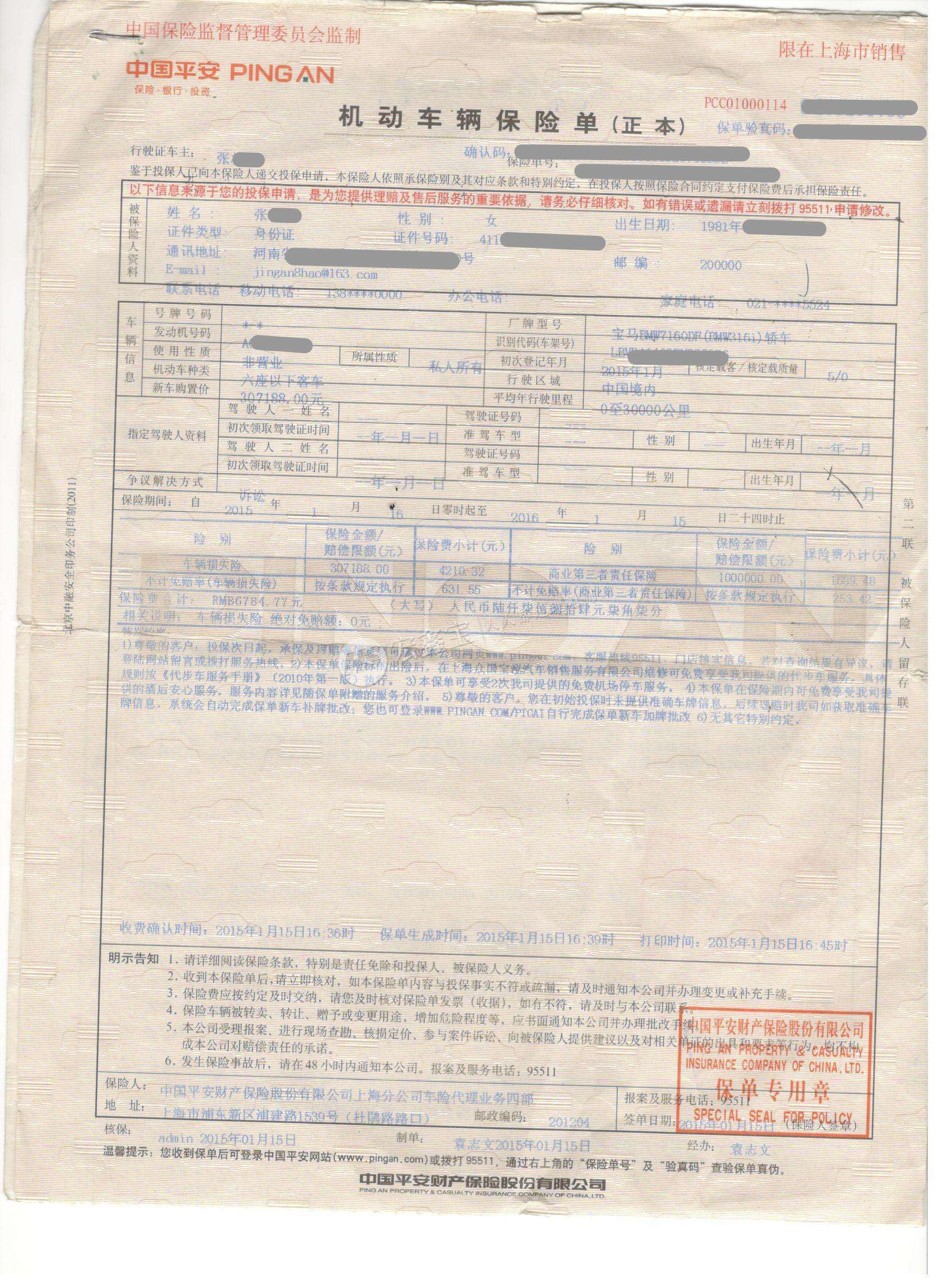 8、打電話到保險公司,把保險單上的發(fā)動機號與車架號進行核對,如果是新車是沒有保險記錄的。