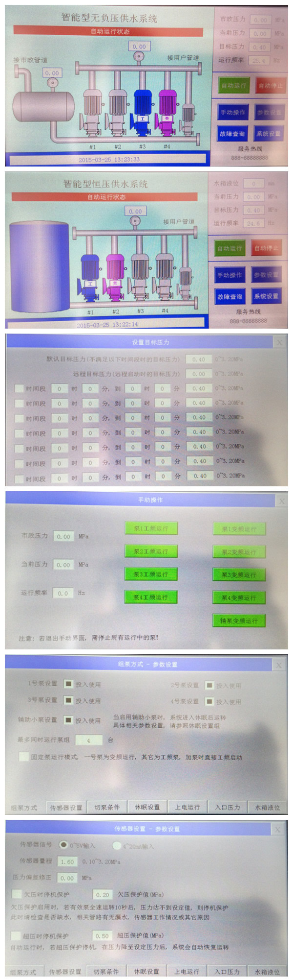 中贏恒壓變頻給水設(shè)備采用人性的視窗操作系統(tǒng),采用PLC可編程控制全自動(dòng)運(yùn)行,無需人員看守。是目前國內(nèi)最為先進(jìn)的高層供水設(shè)備之一,它高度智能,自動(dòng)化程度高,系統(tǒng)設(shè)計(jì)簡單明了,真正的滿足了任何客戶的要求,操作設(shè)備、調(diào)整參數(shù),像我們玩手機(jī)一樣簡單,讓不懂行的客戶也能成為用水專家。